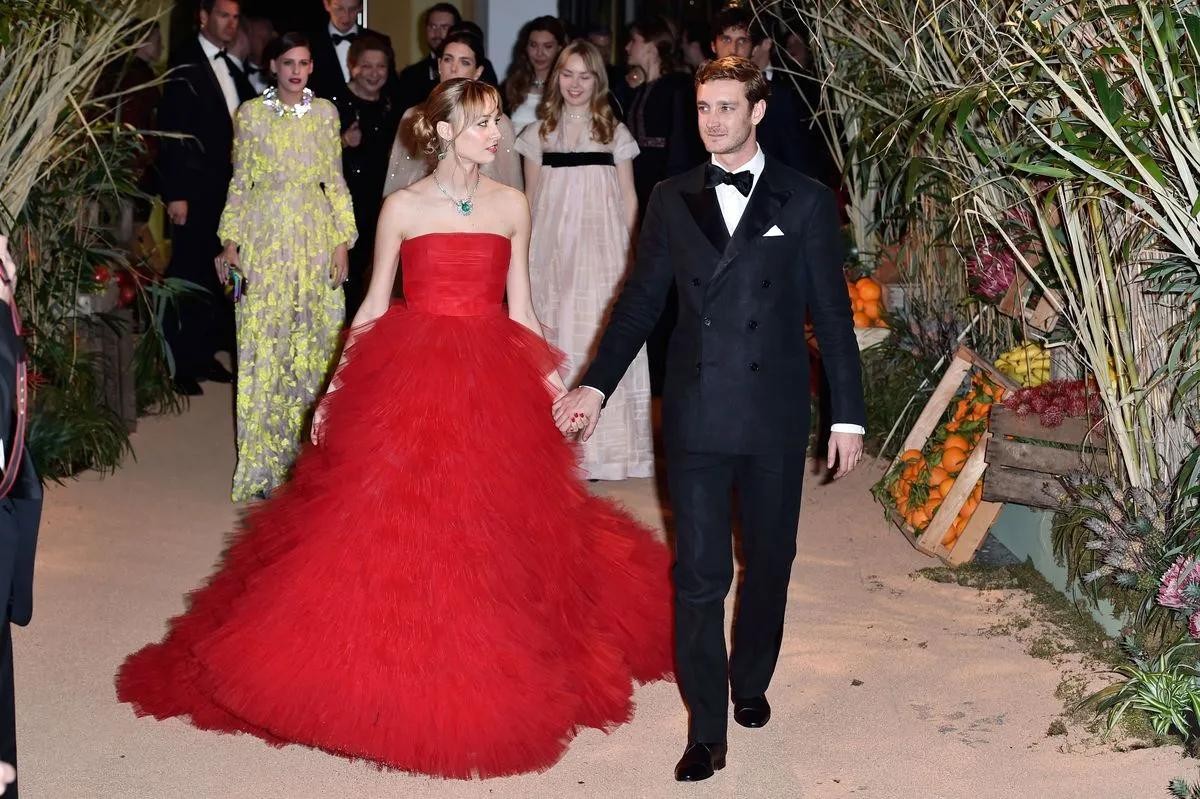 身着迪奥礼服的碧翠丝(左二)与丈夫皮埃尔·卡西拉吉和他的兄弟安德烈·卡西拉奇、塔提阿娜·桑托·多明戈、汉诺威公主卡洛琳、阿尔伯特王子、克里斯蒂安·鲁布托、夏洛特·卡西拉奇、迪米特里·拉萨姆、汉诺威公主亚历山德拉和本·西尔维斯特·斯特劳曼一同出席。