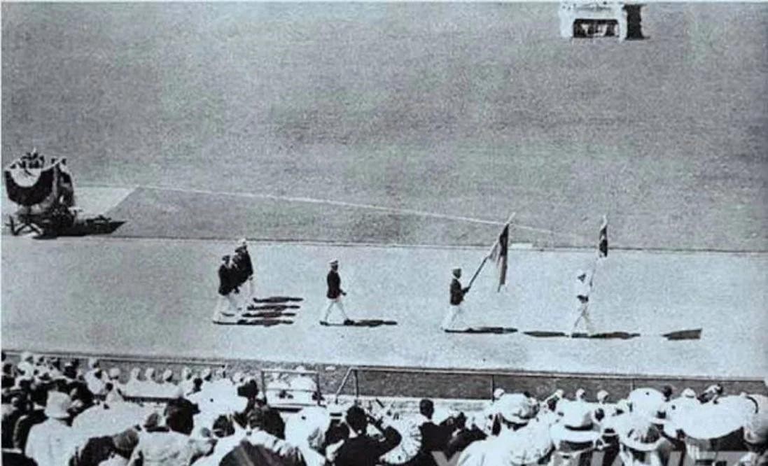 1932年7月30日下午,刘长春高举中华民国国旗,走在了中国代表团的前列。尽管,整个代表团仅有6个人;尽管,真正参赛的运动员也仅有刘长春一人,但是毕竟,中国队来了!不少华侨都激动地高喊起来。