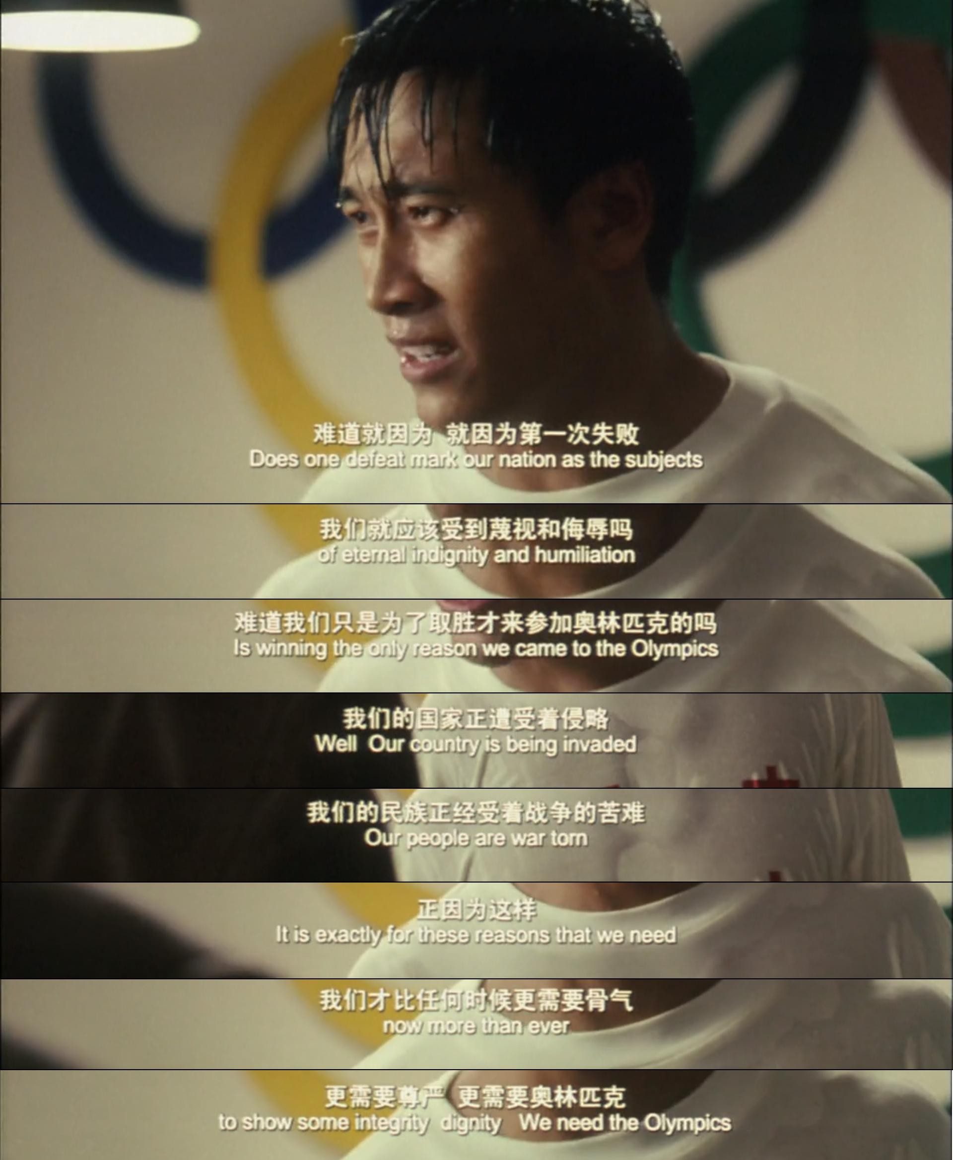 来到奥林匹克的战场上,他代表了他自己,更代表了整个中国。一次失败不可怕,可怕的是失败了之后站不起来,可怕的是不敢面对可能会有的失败而选择退缩。中国正面临着巨大的苦难,因而比任何时候都更需要不服输、不退缩的勇气!