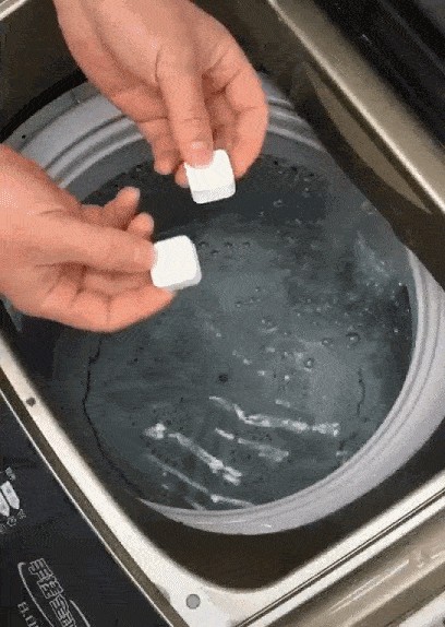 这是一个具有强力去污能力,富含非常多活性成分的清洁产品,有了它不需要拆卸洗衣机,只需要将泡腾片扔入洗衣机当中,再放入一条白色毛巾,用来吸附溶解下来的污垢就可以了。
