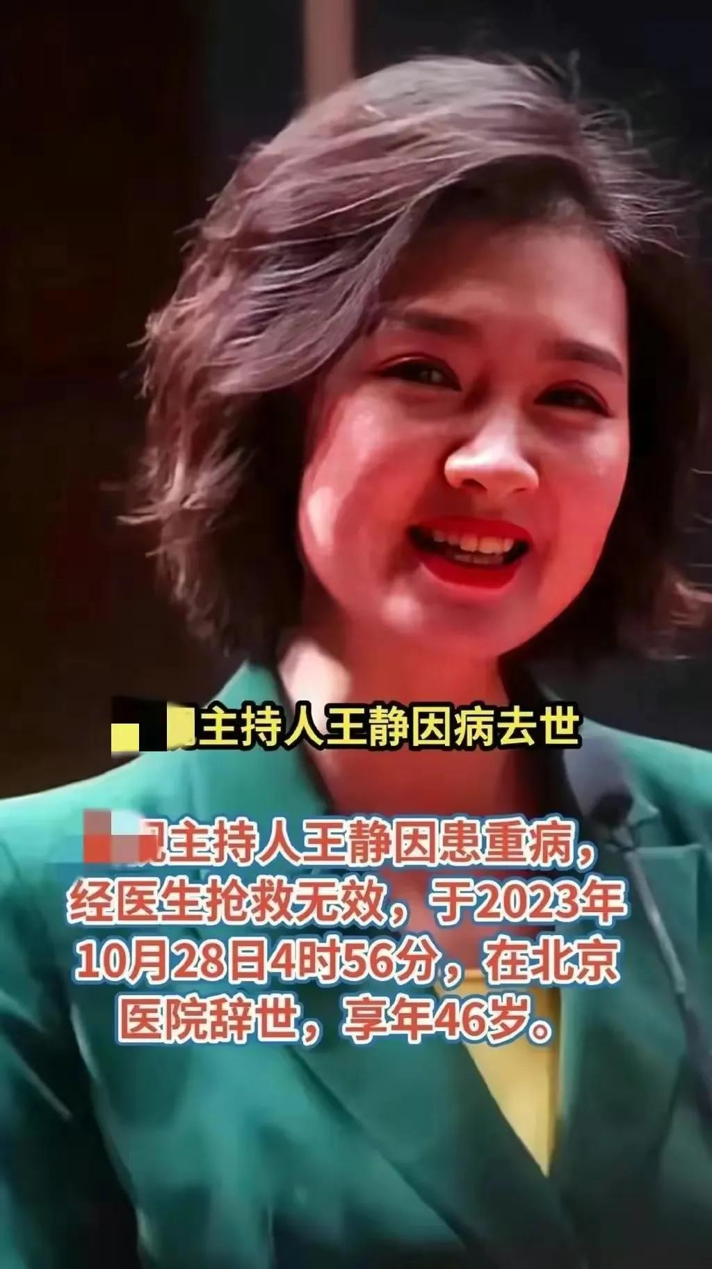 北京文工团主持人王静因病去世,年仅46岁,从确诊到去世才七个月