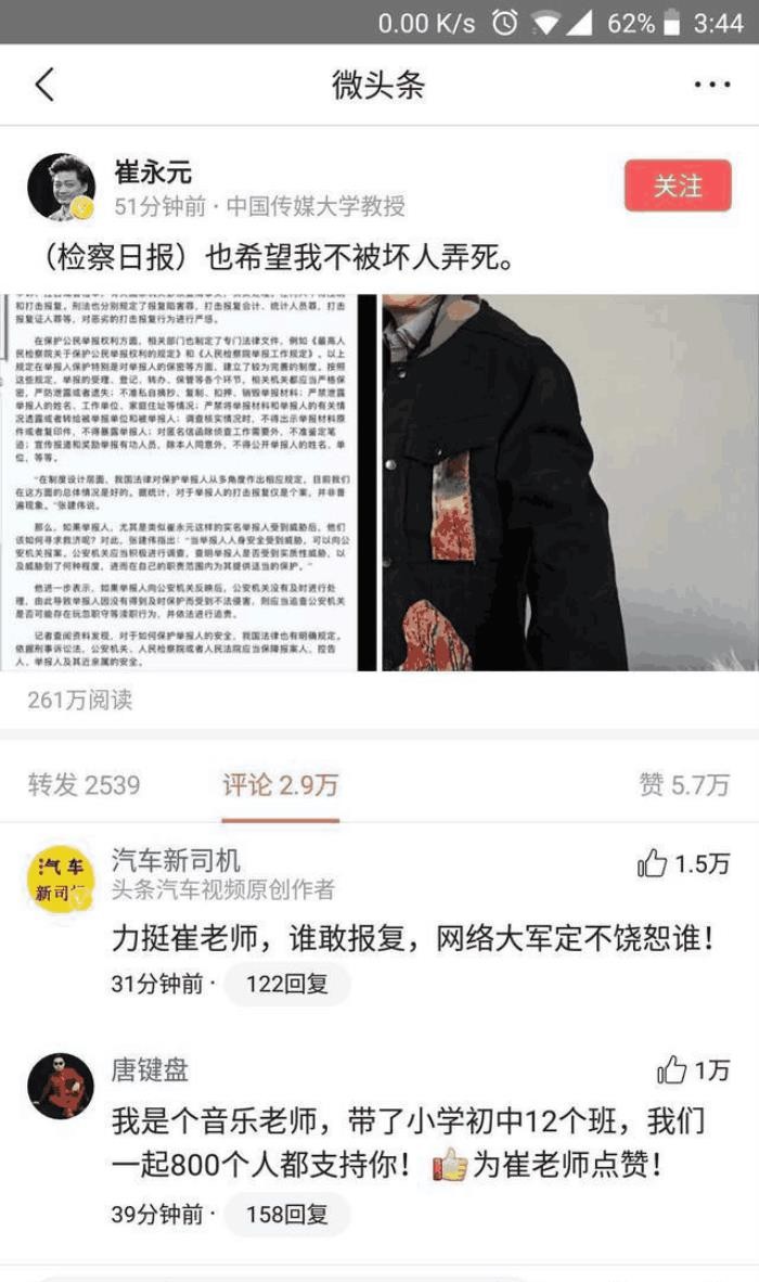 今天,崔永元发布一条说说,而内容是:(检察日报)也不希望我被坏人弄死;似乎崔永元早已知道有人对他早已准备“暗下杀手”,而有关机构和部门也早已注意到这些事,希望崔永元要多保护自己,维护正义的路上,可是一路艰辛,甚至要付出生命代价!