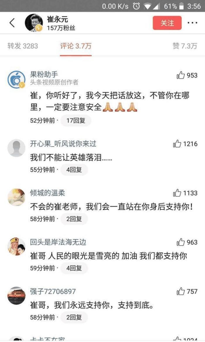 网友看见崔老师的话,也纷纷响应,希望崔老师一定要注意安全!