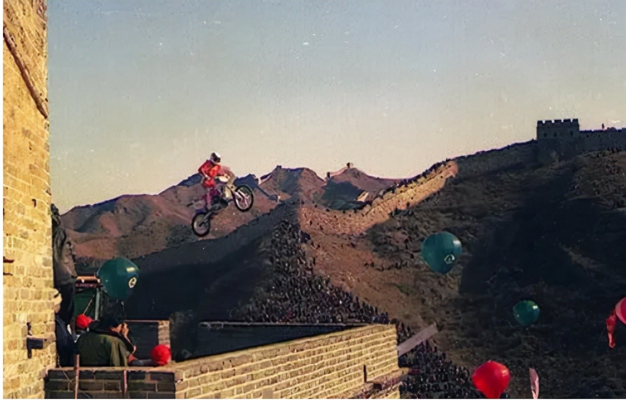 长城看似不宽,只有38米,但飞越难度只高不低。长城的高度有20米,他需要在倾斜15度的助跑台上启动,在只有四米宽的跳台上落地,但柯受良并没有后退,长城脚下,油门一踩,伴随着一阵轰鸣,柯受良驾驶着摩托车成功地飞越了长城,而且是一次就成功了。