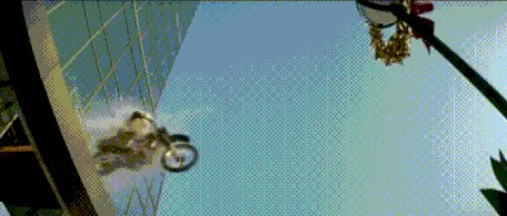于是,我们从荧幕上看到了这一经典特技镜头,柯受良戴着黑色头盔,踩动油门,从二楼破窗而下,一道漂亮的弧线后稳稳落地,一气呵成。众人的心都跳到了嗓子眼,两辆救护车在现场随时待命,没想到,柯受良竟一次成功,而且没有受到任何伤害,他也由此收获了一个外号,“柯大胆”。