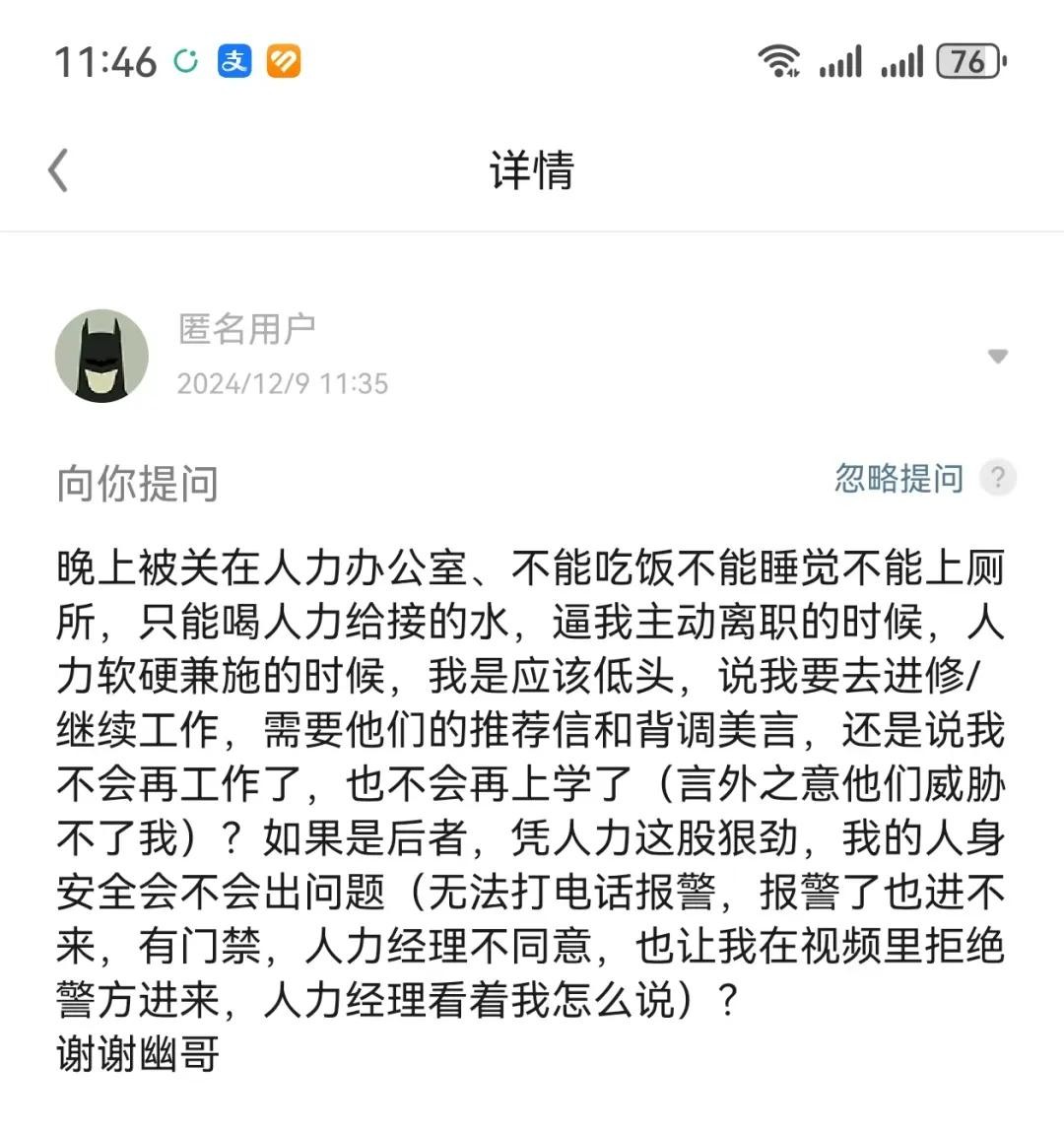 总之,大家被辞退时,如果碰到人身安全的,自己要第一时间报警。不能报警的先记得逃离。