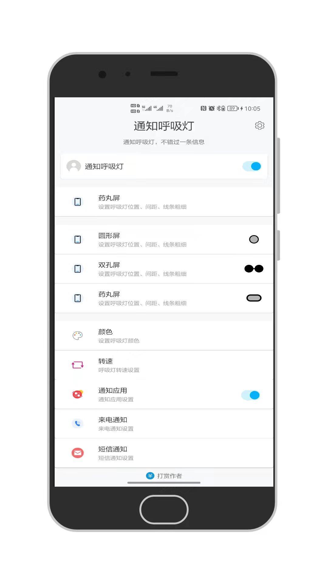 通知呼吸灯APP即可帮你实现手机呼吸灯提醒功能,它可以让异形屏实现应用来通知通过呼吸灯提醒功能,如下图: