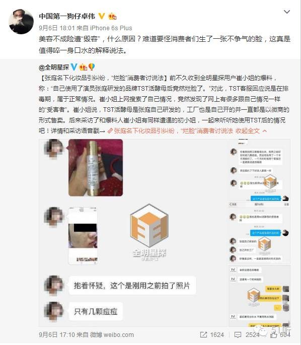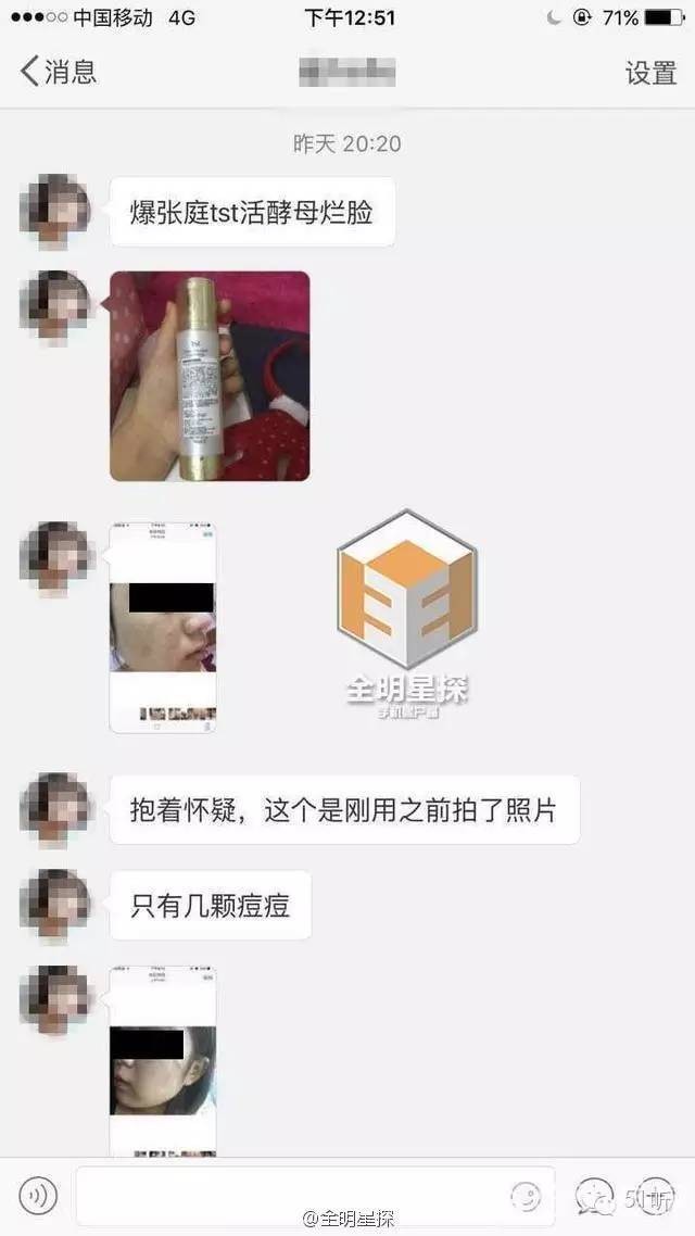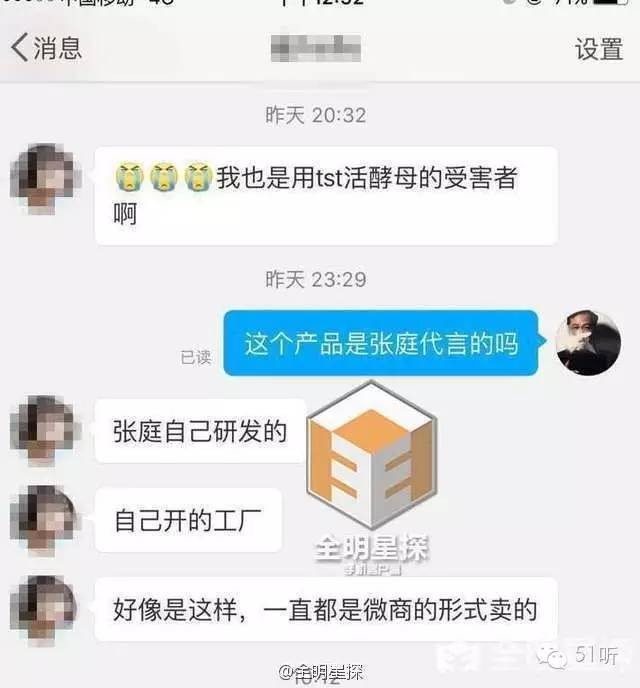 有网友称用了张庭家的主打产品活酵母之后脸烂了,