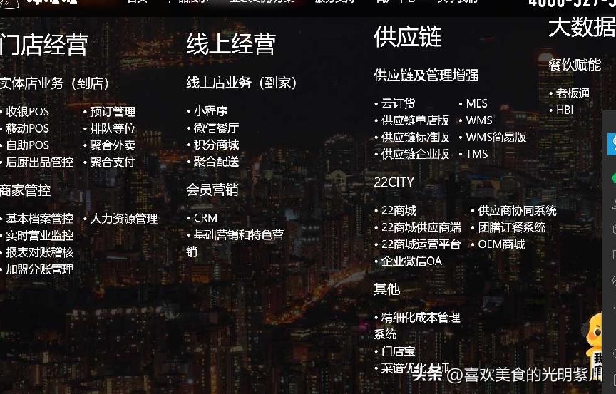 这么强背景的企业按道理不应该出现提现难,网上一些媒体分析原因的时候甚至说“是不是疫情影响了公司的现金流”,这其实没有弄清这种类型的餐饮SaaS服务平台产品的逻辑是什么。下图是哗啦啦官网上其可以为餐饮企业提供的产品服务: