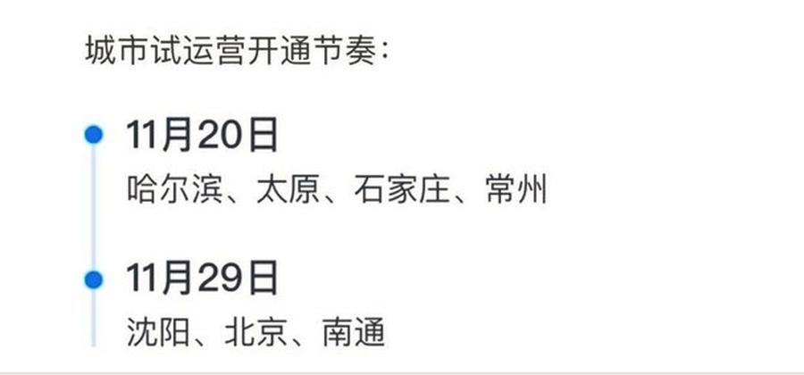 公告中,滴滴官方首先公布了滴滴顺风车试运行的城市及开通时间。据悉,滴滴顺风车首批试运行的城市共有7个,它们分别是哈尔滨、太原、石家庄、常州、沈阳、北京及南通。其中,哈尔滨、太原、石家庄及常州4城的开通时间是11月20日,而沈阳、北京及南通的开通时间则是11月29日。