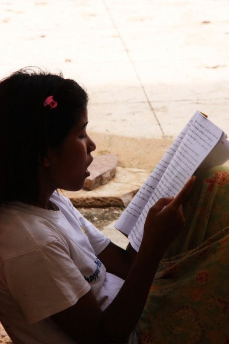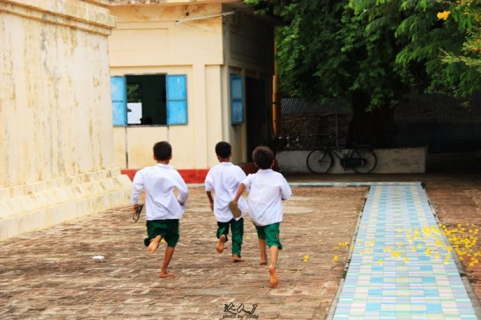 在阿南达寺外的门廊,听到朗朗的阅读声声,原来是一位缅甸小姑娘在念经文。我走近她,她开始注意了下我,片刻便又投入到认真的阅读中去。