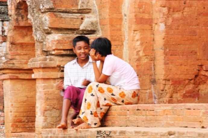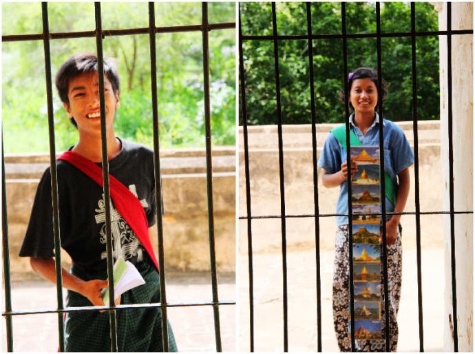 在素威库吉佛寺外等着给我们推销的缅甸儿童。男孩卖书,女孩卖明信片。