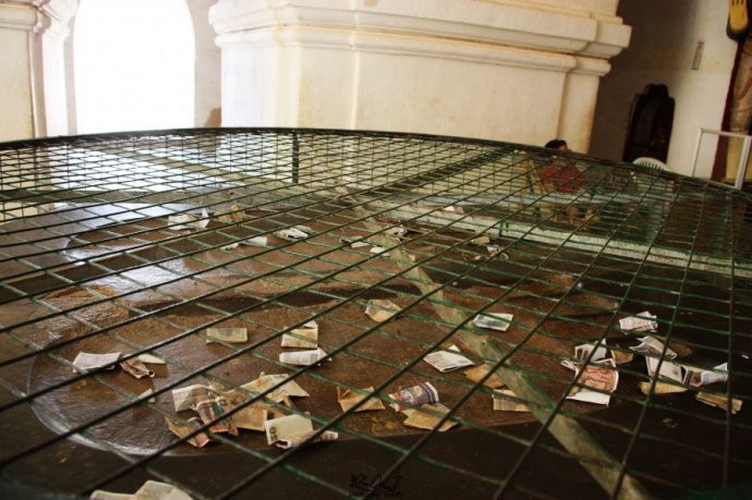门口有两个大大的佛的脚印,也是信众表示心诚的地方