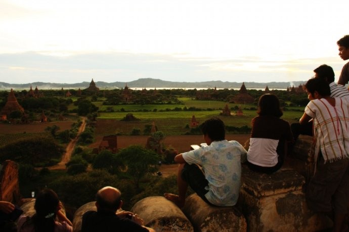 每天17:00左右,瑞山陀塔上面就像这样。人、人,到处都是人,而且大家都在远观着西方,因为这里是东南亚最美日落胜景地之一。