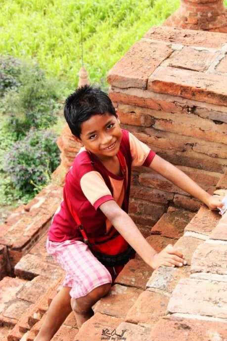 在爬Buledi塔时遇到的缅甸小男孩,冲着我们就来一个大大滴微笑。