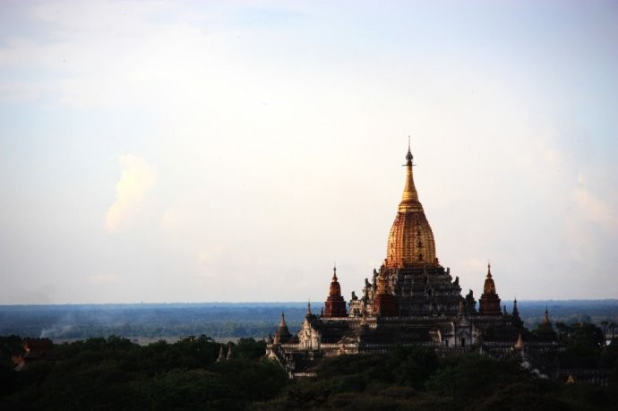 在蒲甘无论从什么角度都可以看到它,它是规模最大的一座,酷似埃及金字塔的佛寺。