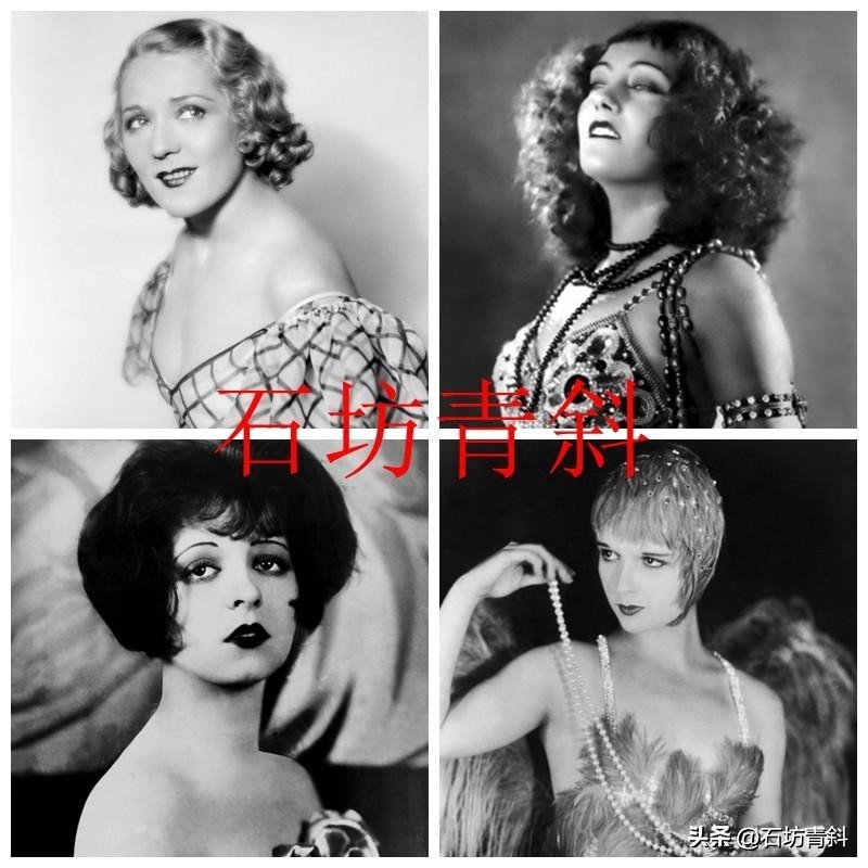 照片从上至下左起:20世纪20年代末好莱坞四大女星——玛丽·碧克馥Mary Pickford、葛洛丽亚·斯旺森Gloria Swanson、克拉拉·鲍、露易丝·布鲁克斯Louise Brooks