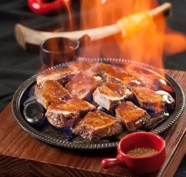 澳洲牛肋排,卤汤,自制黑椒汁,椒盐,白兰地酒。