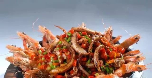 主料:鱿鱼须6两、大明虾5两