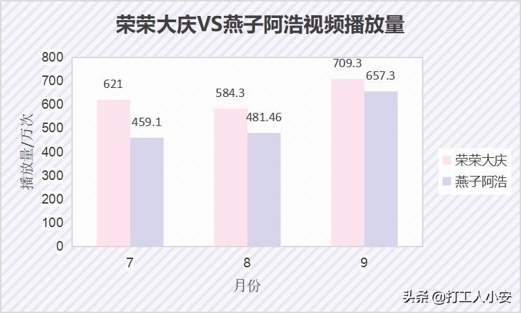 哈哈,他们的粉丝朋友们有没有惊到?!别再让人家出去找工作了,如果每万次收益真的有50元,做视频未尝不可。在家可以干农活,又能照顾父母孩子,不用考虑工作中可能出现的乱七八糟的事,何乐而不为?!上面的柱状图之所以把他们两家每家各自的账号一起统计的,是因为之前阿浩更新的频次太少啦,燕子的比较多,继续加油哦。不过燕子他们也在网上卖自家种的桃子和米线,这也是一笔不错的收入。