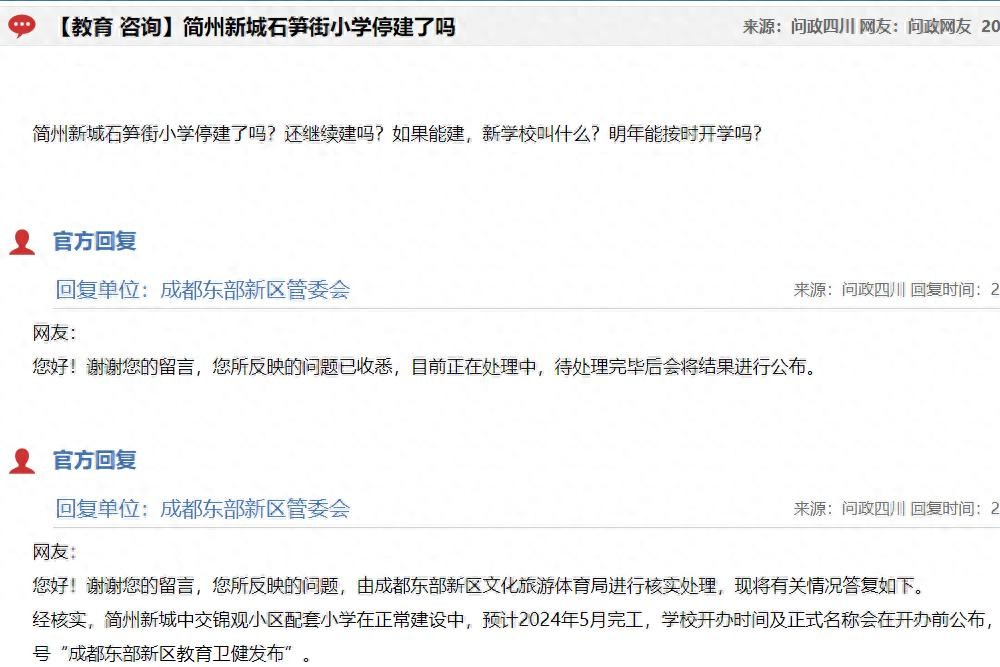 简州新城石笋街小学停建了吗?还继续建吗?如果能建,新学校叫什么?明年能按时开学吗?