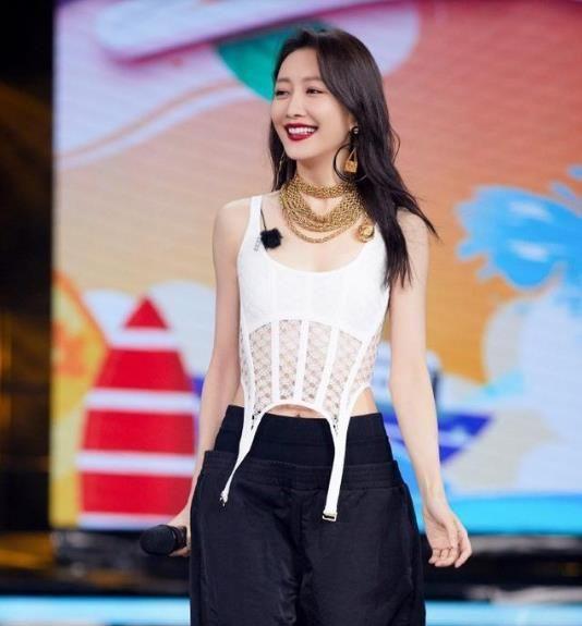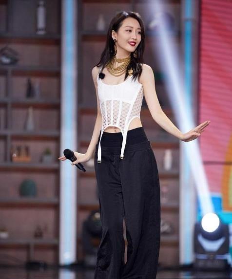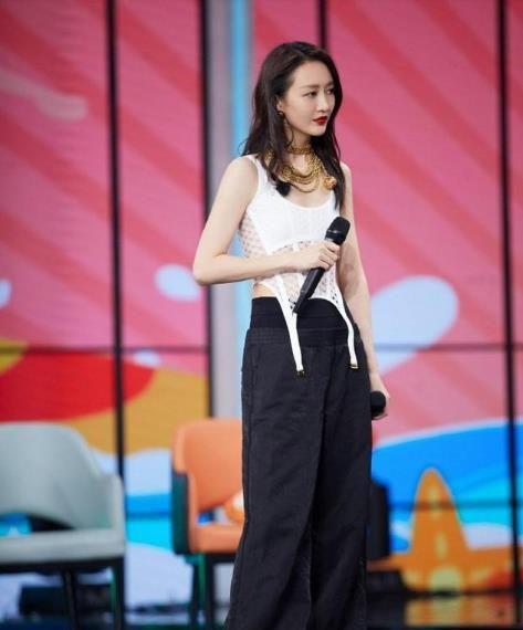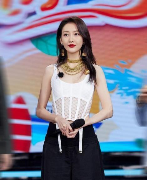 王鸥穿蕾丝背心上节目,露出两根带子像泳衣,对自己身材充满自信
