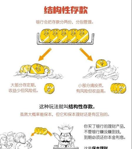 首先,结构性存款的收益是预计收益,收益是浮动的,浮动收益是因为有一部分存款用于金融衍生品投资。