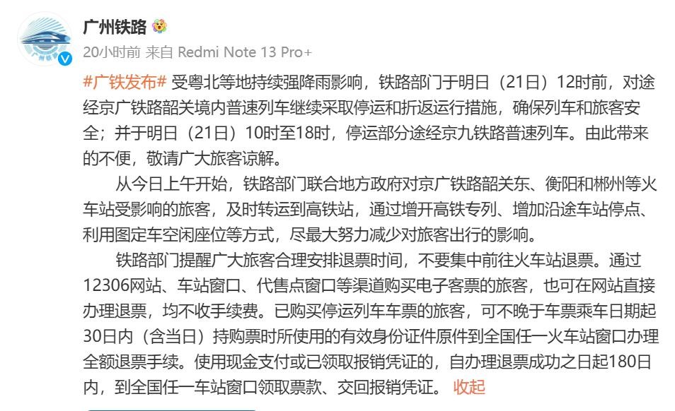 广东多地紧急停课部分列车停运、航班延误