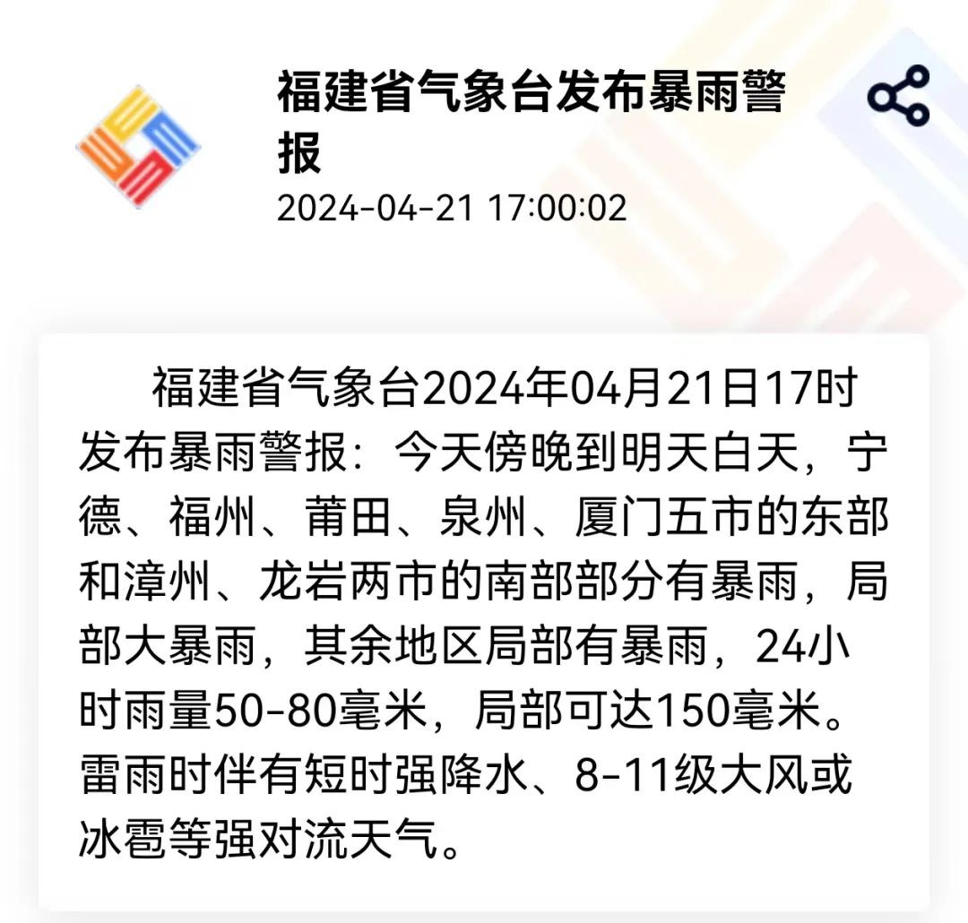 刚刚,厦门紧急预警!暴雨+强雷电+11级大风+小冰雹……