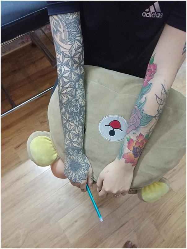 如今,Phung的身上已经布满了各种图案的纹身,而且她还在继续当学徒,还称希望在不久后能拥有自己的纹身店。
