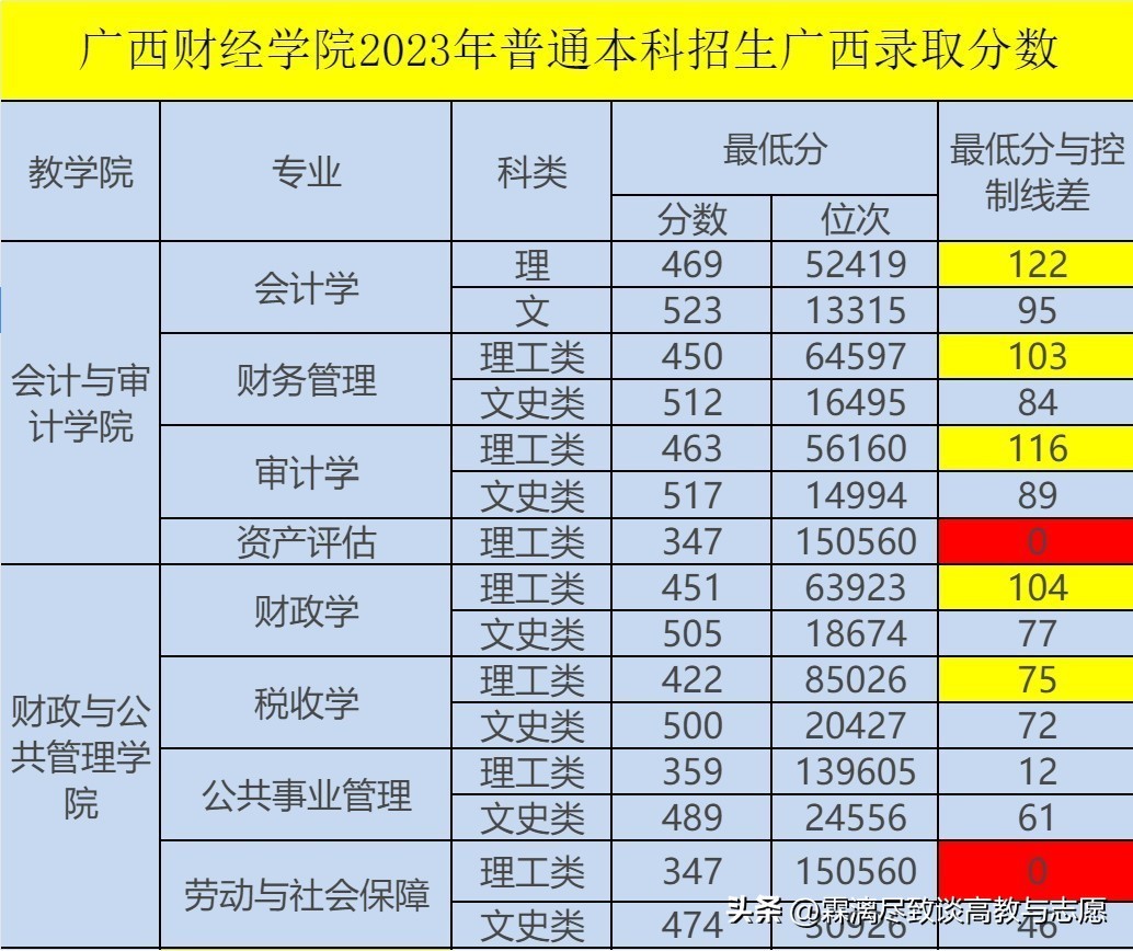2023年广西理科的控制线是327,文科是428,下面我提到的专业最低录取分和控制线的分差就是以327和428作为基线的。