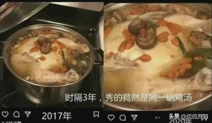 看到他们这精彩的拉锯战,也有网友好奇的找出他们之前秀恩爱的照片,发现王力宏2020年发的秀恩爱的鸡汤,跟2017年李靓蕾发的图片一模一样。