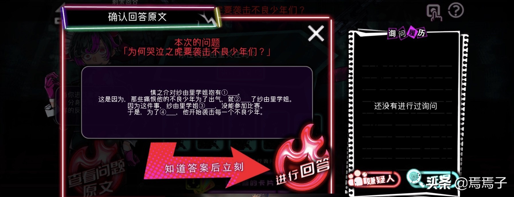 而如果只有这些元素,《谎言侦探》似乎不足以成为一部在taptap上收获9.1分的高分佳作,我个人认为它的精彩之处在于真结局的反转,并且将一个严肃的问题推向了我们面前——