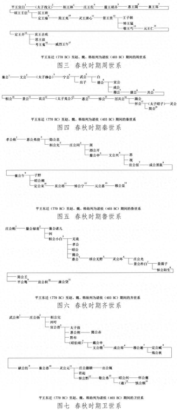 刘绪先生在《夏文化探讨的现状与任务》一文中指出:“周代不是晚婚晚育,二十岁以前可以成婚生子,即一代约20年,更早的夏商也当如此。可夏代14世历471年,平均每世33年,这意味着夏代男子约30岁成婚,即一代约30年,比周代晚婚太多,有违常理。” [3]笔者翻阅了《史记》世家中记载的周代各诸侯国国君世系以及积年,发现齐国从770BC的平王东迁到403BC的韩、赵、魏始列为诸侯共经历了庄王至康公一共11世,平均每一世33.36年。由于有《史记·十二诸侯年表》和《史记·六国年表》作为年代学的支撑,《史记·齐世家》又有每一位在位的齐国国君的详细在位年,因此世数和积年都没有问题,为何每一世也可以超过30年?是什么因素决定了每一世君主的平均年?是否每世超过20年即“有违常理”?