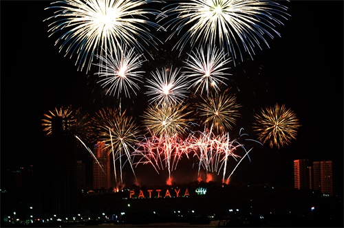 2022年1月1日,泰国芭堤雅燃放烟花迎接新年。 新华社发(拉亨 摄)