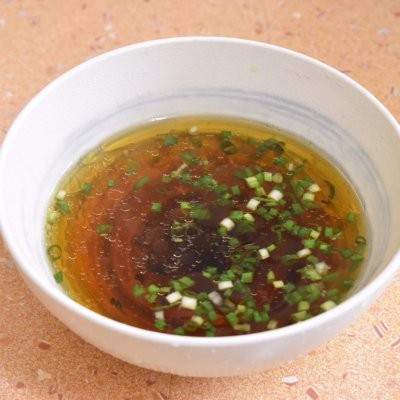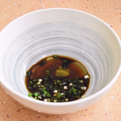 3、葱花、生抽、陈醋、香油放入碗中