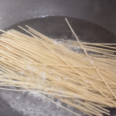 5、金龙鱼荞麦挂面下入锅里,大火煮三分钟左右煮熟