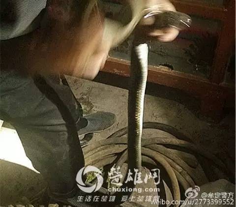 楚雄牟定太极村一村民家现近2米长乌梢蛇,盘踞家中木柜吓坏村民(图)