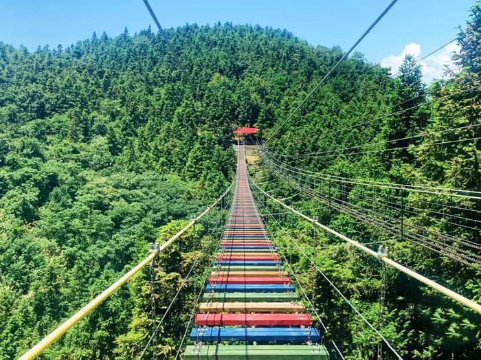 在众多游玩项目中,天空之城可以算得上是网红项目,360°的玻璃风景台悬在高空之中,如果不刻意低头去俯视脚下的“万丈深渊”基本也不会感到特别害怕,特别是站在边上去欣赏四周的风景,美得让人久久不想离开。而悬崖秋千更是刺激,随着秋千在山谷里来回摇荡,刺激程度五颗星,而且坐在秋千上,还能将山间的景色一览无余。