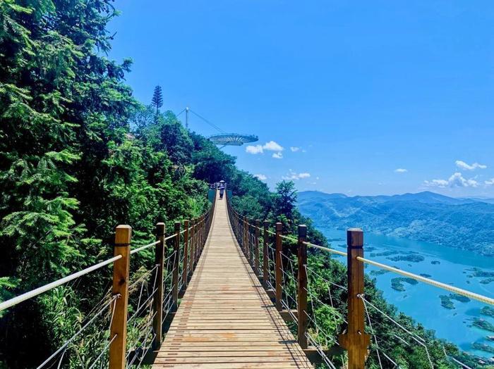 西线里面主要游玩项目有玻璃漂流、跨湖索道、高空玻璃滑道等。而东线更为刺激一点含有圆弧博栈道即天空之境,以及尖叫声不断的悬崖秋千可以玩,喜欢“冒险”的可以选择东线。