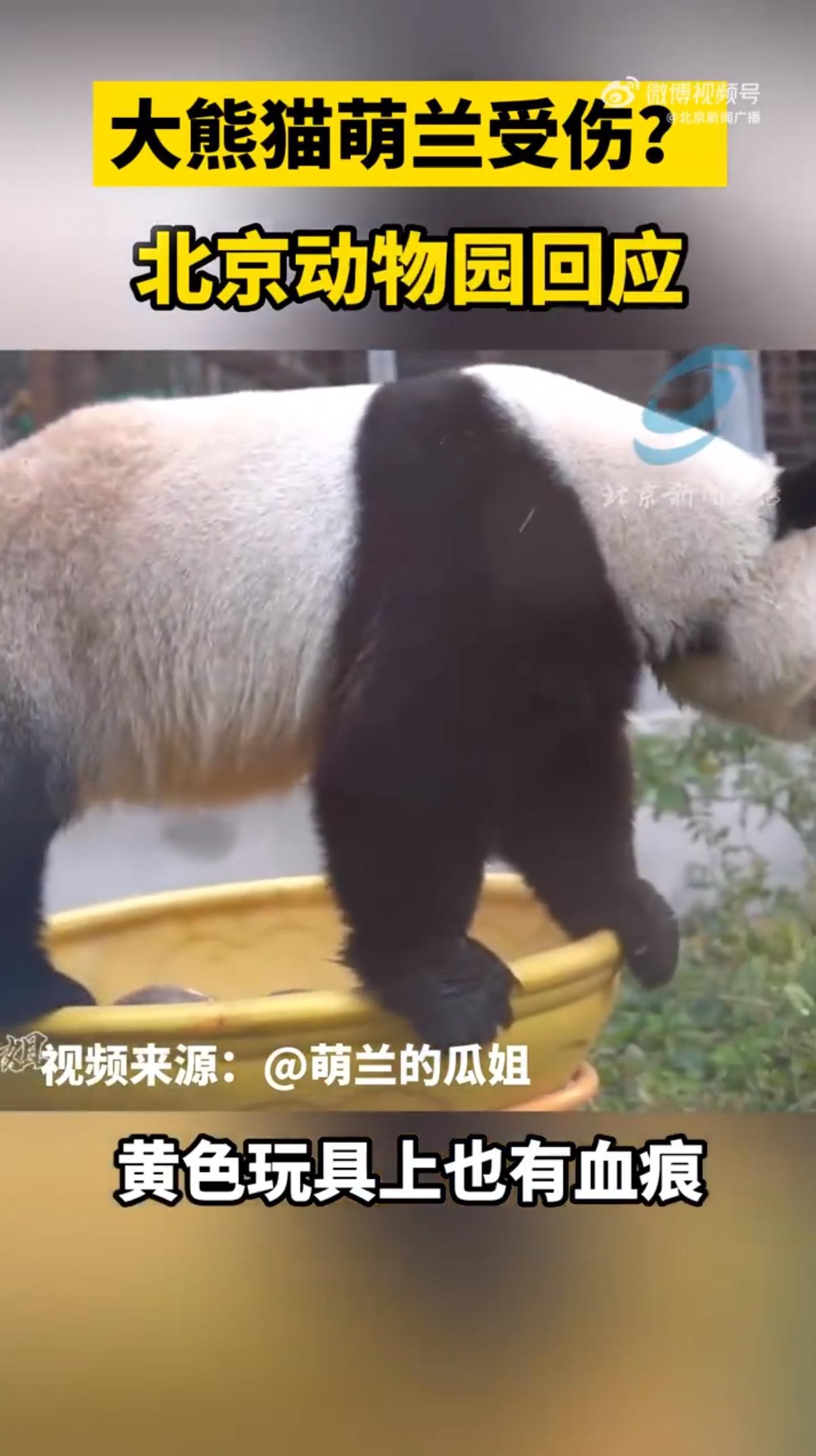 10月25日,据北京新闻广播:近日有网友反映,大熊猫萌兰手掌出血,带伤营业,抓过的竹子上有血迹,黄色玩具上也有血痕。