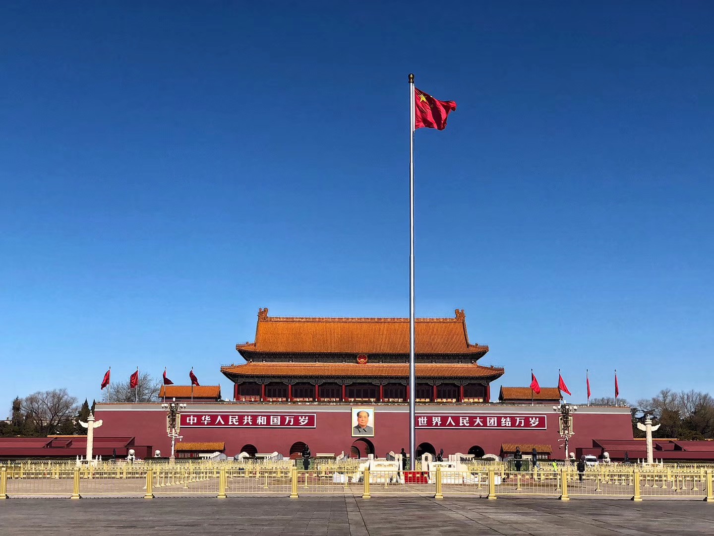 天安门广场,地处北京市东城区东长安街,北起天安门,南至正阳门,东起中国国家博物馆,西至人民大会堂,是世界上最大的城市广场。中央矗立着人民英雄纪念碑和庄严肃穆的毛主席纪念堂,天安门两边是劳动人民文化宫和中山公园,与之浑然一体,共同构成天安门广场。(环球文旅特约作者:米广弘摄并文)