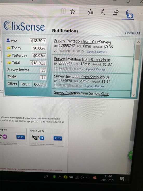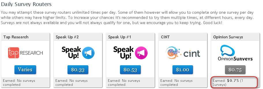 1、点击surveys按钮,进入调查页面。带小红旗的是调查完审核后才到账的;而不带小红旗的是立即到账。