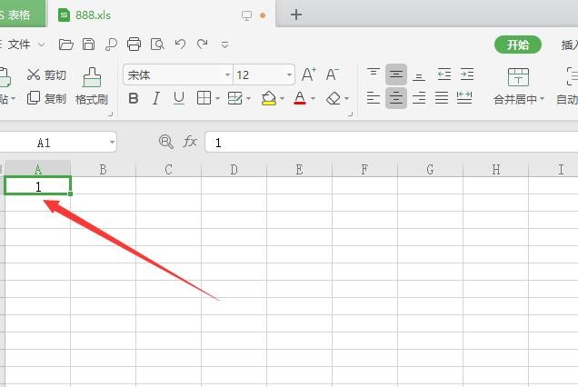 1.打开excel表格,在单元格输入数字“1”;