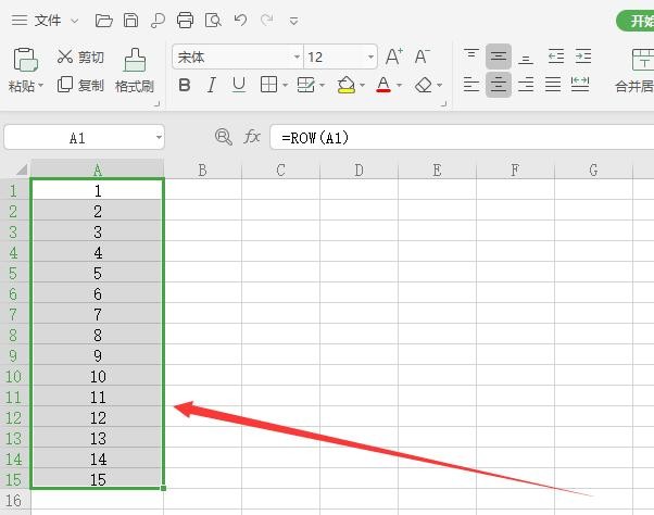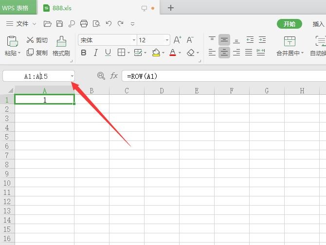 2.在A列的编辑框输入“A1:A15”(假设序号到15,如需更多可输入其他数字),”,按键盘“Enter(回车键)”;