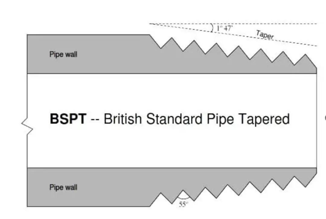 BSPT(British Standard Pipe Taper):锥形管螺纹,用于需要密封的管道连接。BSPP(British Standard Pipe Parallel):直管螺纹,不带锥度,通常用于不需要密封的机械连接,密封通常通过垫圈或O形圈实现。