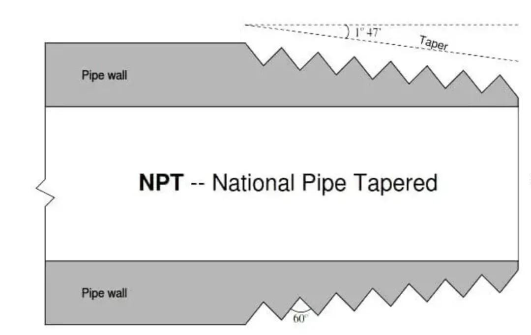 锥度设计:NPT螺纹具有1:16的锥度(即每英寸的直径变化为1/16英寸),这意味着螺纹是锥形的,而不是直线的。锥度设计有助于通过拧紧螺纹达到自密封效果,防止泄漏。螺距和牙型角:NPT螺纹的牙型角为60度,螺距根据管道直径不同而不同。螺距和牙型角的设计确保了螺纹连接的强度和密封性。标准规范:NPT螺纹的标准规范由美国国家标准协会(ANSI)和美国机械工程师学会(ASME)制定,常见的标准有ANSI/ASME B1.20.1。