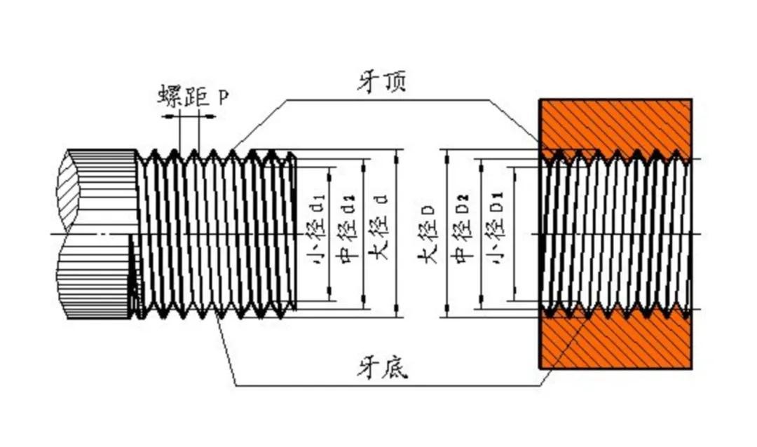 粗牙螺纹(M)适用于一般用途,具有较大的螺距和较高的强度。标记示例:M10,表示公称直径为10毫米的粗牙螺纹。细牙螺纹(MF)适用于需要更高连接强度和防松要求的场合,螺距较小。标记示例:M10x1.0,表示公称直径为10毫米,螺距为1.0毫米的细牙螺纹。