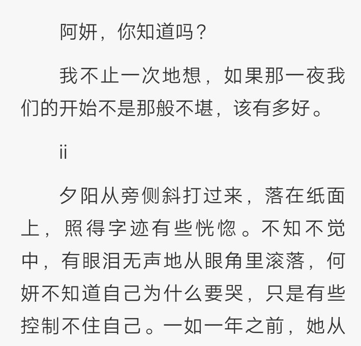 第三个地方就是何妍时隔一年以后读到傅慎行写给他的信件,何妍不知不觉的哭了,她不知道自己为什么要哭,其实这么聪明的何妍何尝不知道,她只是不想知道,不想往深处去想。