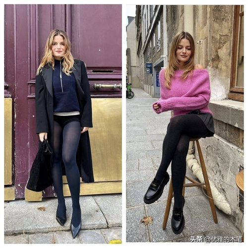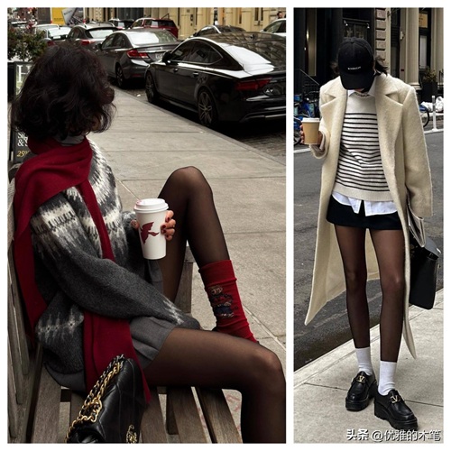 4. 层次搭配:在穿搭时,可以考虑进行层次搭配,比如在丝袜外再加穿一条长筒袜、或者在丝袜外再穿一条长靴袜,这样能够增加保暖效果。